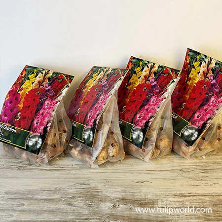 Stock up on bulk gladiolus in this ultra mix of colors! A super limited-time offer on over 100 gladiolus bulbs. Wholesale prices for gladiolus are available to all customers with this ultra pack. The mix will contain at least 3-5+ different colors of gladiolus from purple, red, white, yellow, pink, orange and even bi-color blooms.