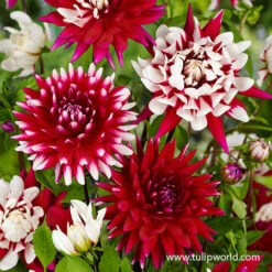 Elga Cactus Dahlia has bright pink blooms and pointed petals. This bushy dahlia grows 36-48″ tall with a similar spread, and does best when planted in full sun.