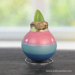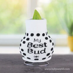 Flora Sweater Amaryllis is a fun and funky sweater amaryllis. The sweater on this amaryllis is yellow with groovy flowers all around. The amaryllis bulb will bloom with pure white flowers within weeks of receiving it. No water, or soil is required to get loads of blooms from the amaryllis bulb inside the sweater, it’s been specially prepared to bloom without extra care. Makes the perfect gift for a friend, family member or yourself!Â