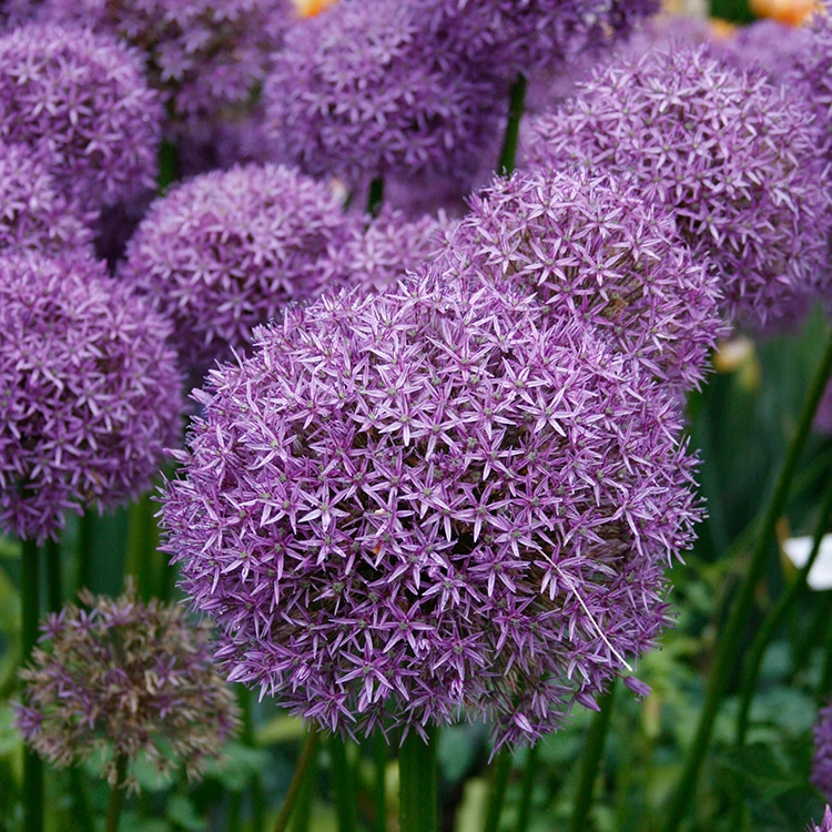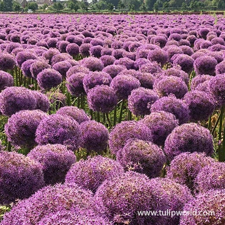 Allium Globemaster usually gets a 8-10″ bloom giant purple globe of flowers, is a crossing result between Allium macleanii and Allium christophii. Globemaster allium blooms starting from June and lasts long afterwards. Globemaster Allium is a great cut-flower, it can be a shorter replacement for Allium giganteum.
