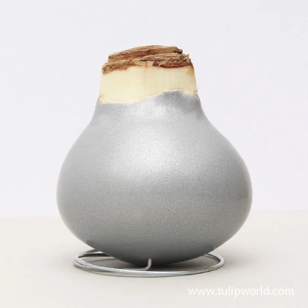 Looking for a unique gift for a loved one? Look no further! This no-water Silver Base Waxed Amaryllis is the perfect gift for anyone! This amaryllis requires no water or soil; simply place it on a surface in your home, watch it grow and within a few weeks you’ll have the most beautiful blooms! That’s it! How does it work? These specially selected amaryllis bulbs contain enough stored energy to grow and bloom without water or soil.