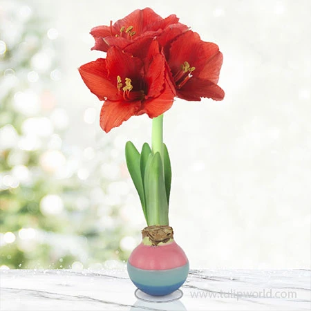 The waxed amaryllis may arrive in a dormant state or with little growth. A bud may be present on some waxed amaryllis but not all. Waxed amaryllis should be placed in a warm location for optimal growth. Growth and blooms will occur within 4-8 weeks of receiving the bulb.